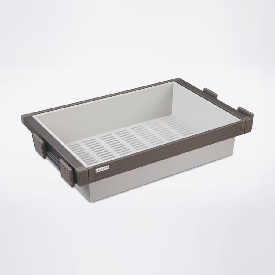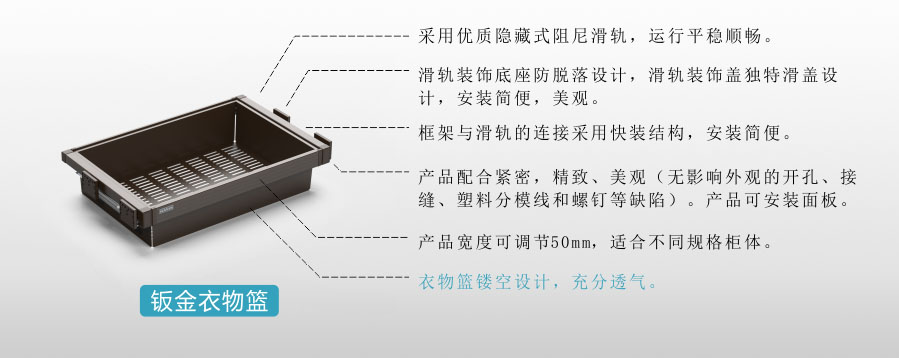 采用高純度鋁合金框架,連接件采用優質 ABS工程塑料,產品結實牢固。采用優質隱藏式阻尼滑軌,推拉順滑。框架寬度可調,適應不同柜體寬度。接縫遮蓋處理,外觀精致美觀。采用快速拆裝結構,方便安裝和清理保養。