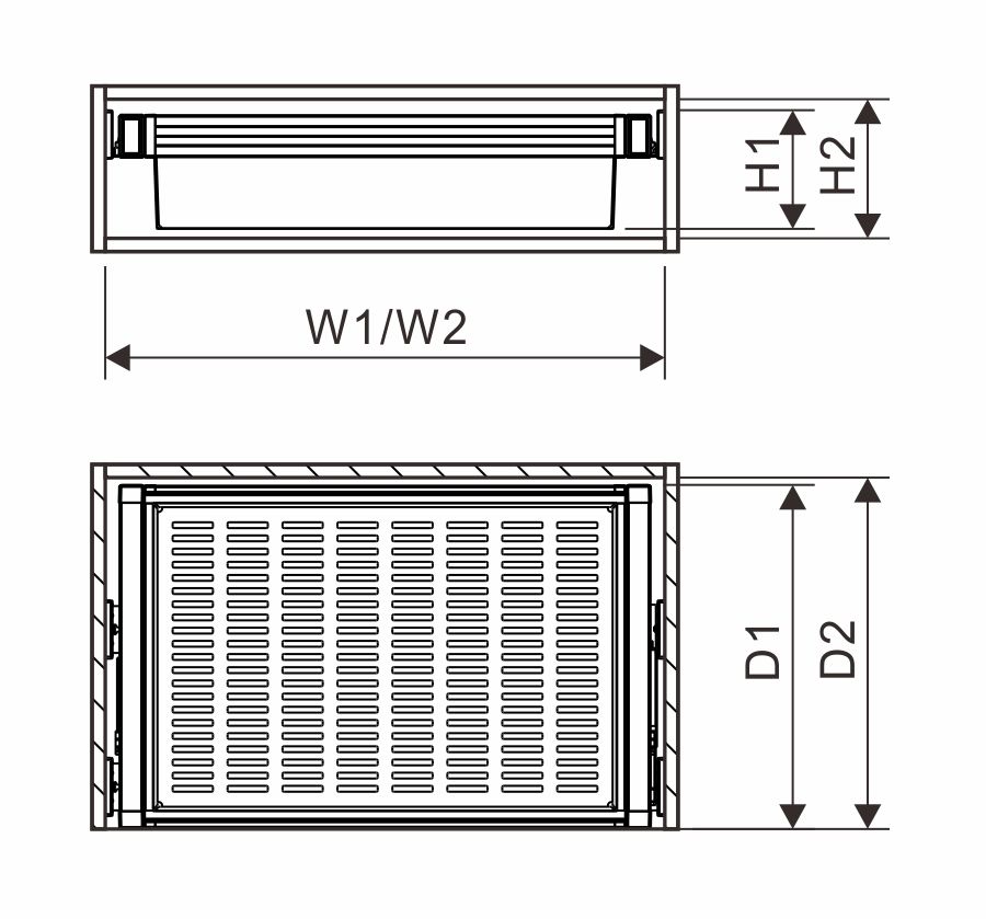| 型號 | 柜體規格 | 外觀尺寸 寬(W1)x高(H1)x深(D1) | 柜體內空 寬(W2)x高(H2)x深(D2) |
