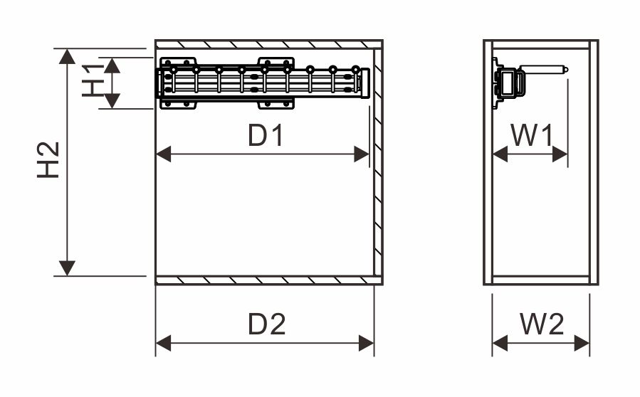 | 型號 | 柜體規(guī)格 | 外觀尺寸 寬(W1)x高(H1)x深(D1) | 柜體內(nèi)空 寬(W2)x高(H2)x深(D2) |