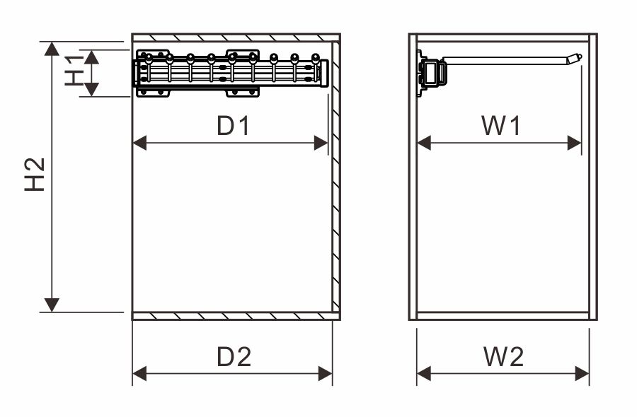 | 型號 | 柜體規格 | 外觀尺寸 寬(W1)x高(H1)x深(D1) | 柜體內空 寬(W2)x高(H2)x深(D2) |