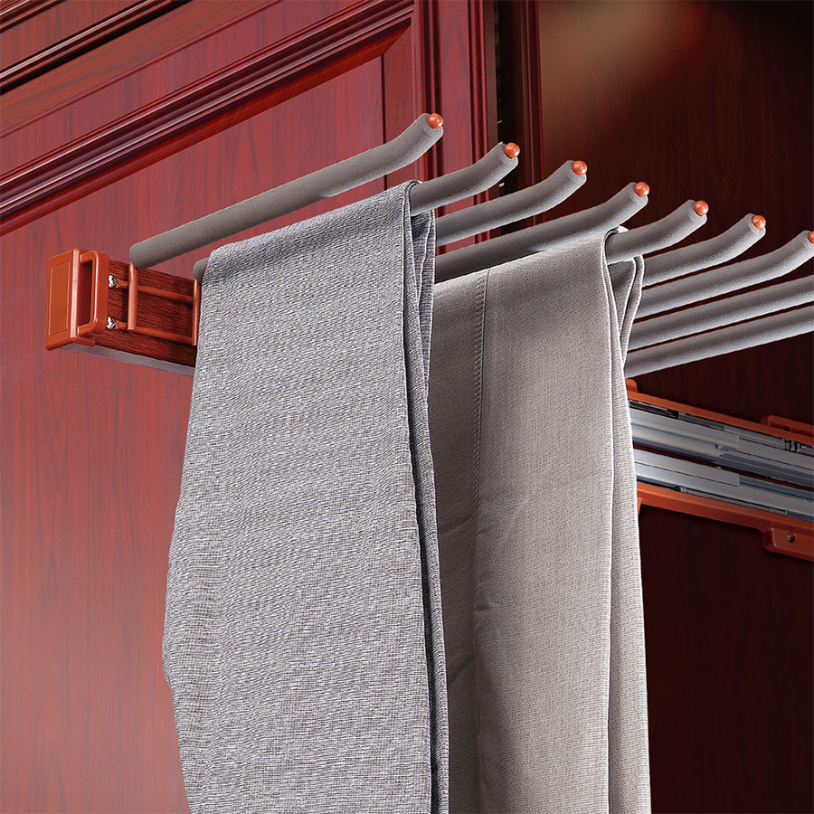 推拉褲架,褲子垂掛存放,防折皺,方便存取。