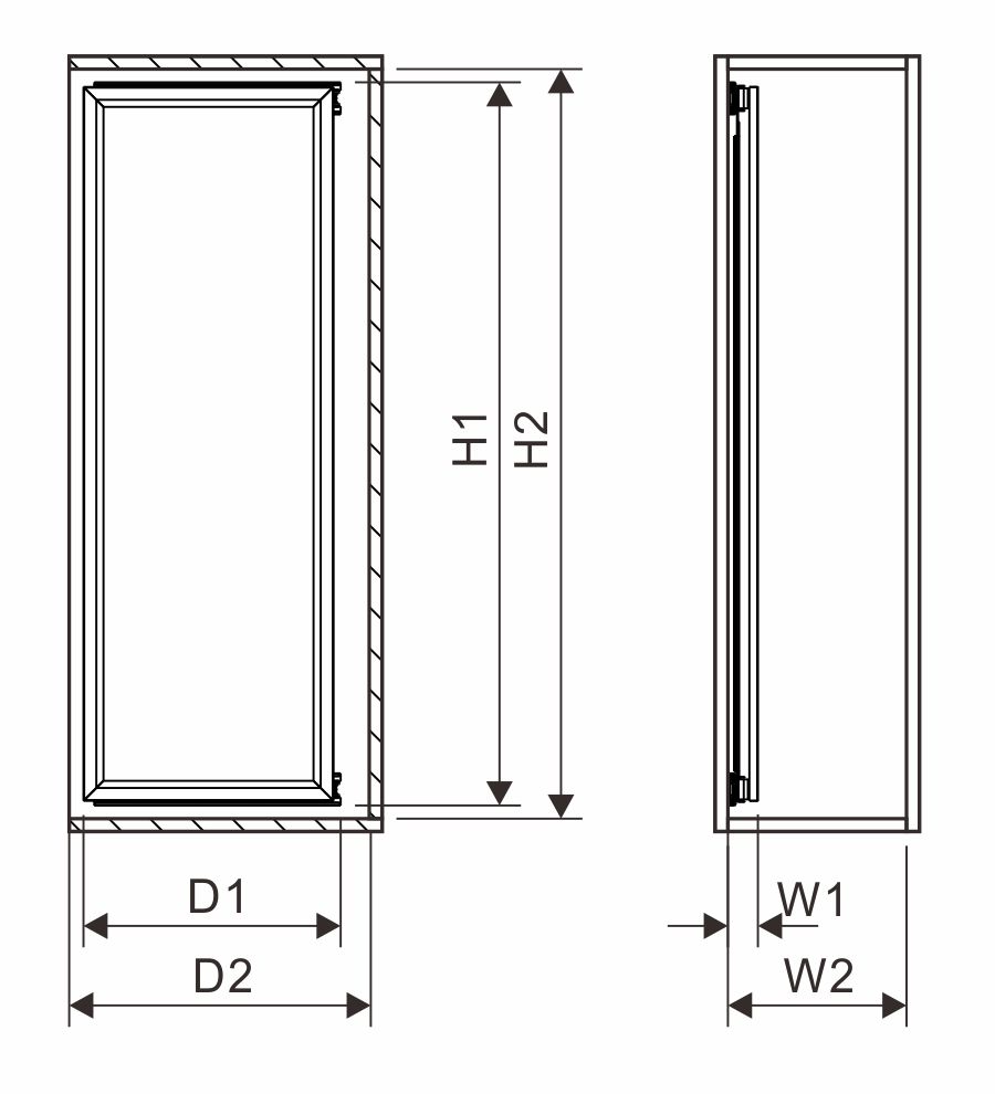 | 型號(hào) | 柜體規(guī)格 | 外觀尺寸 寬(W1)x高(H1)x深(D1) | 柜體內(nèi)空 寬(W2)x高(H2)x深(D2) |